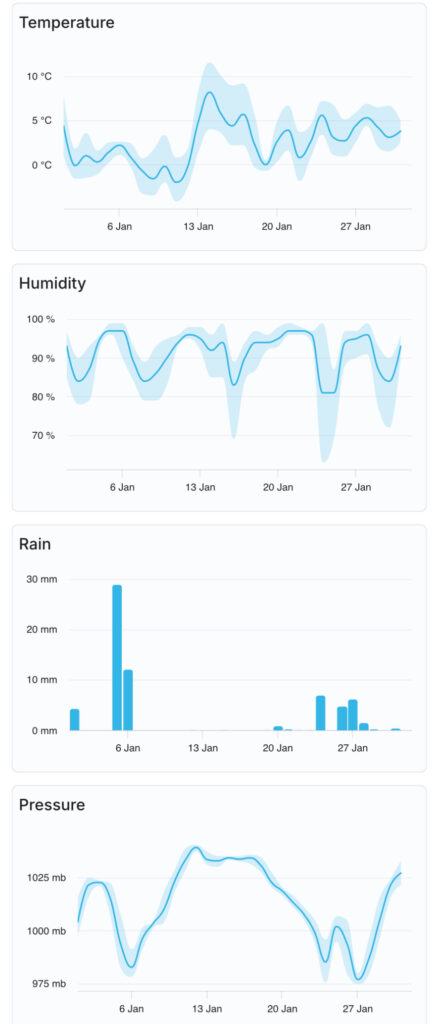 It was the coldest January since January 2021 in Durham. Mean temperature was about 1.5 degC below the long term average. The spell from Jan 2nd-12th averaged just 0.1 degC.